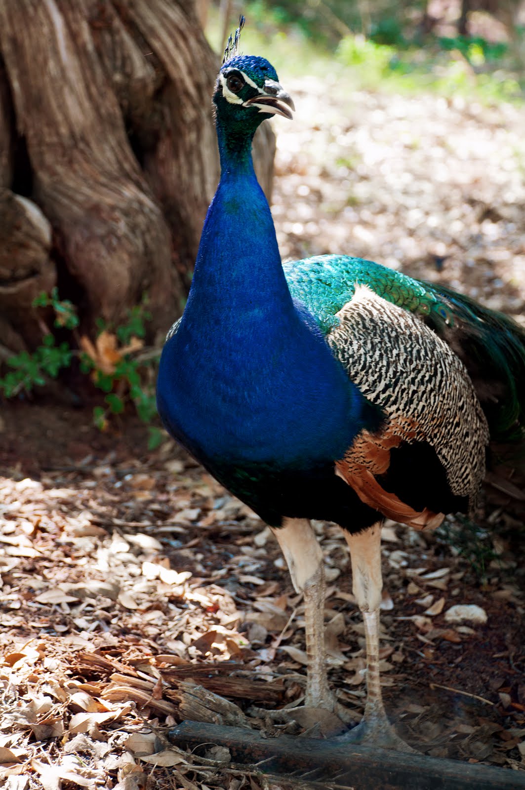 Chickens and Peacocks roam free at the Austin Zoo. I followed a peacock around for about 45 minutes trying to get a super awesome shot of it ... but I think it was camera shy.